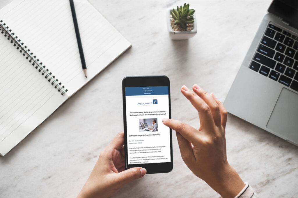 Erhalten Sie regelmäßig Updates per E-Mail zu Themen rund um Personal und Vertrieb in der Assekuranz und Tipps für Ihre Karriere.